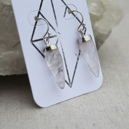 Silver Quartz Crystal Earrings